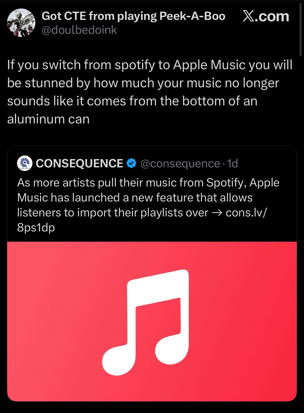 But this week is an easy one for me. The supremacy of Apple Music.